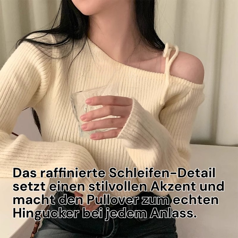 Figurbetonter Pullover mit asymmetrischem Ausschnitt und Schulterfrei, mit Schleife